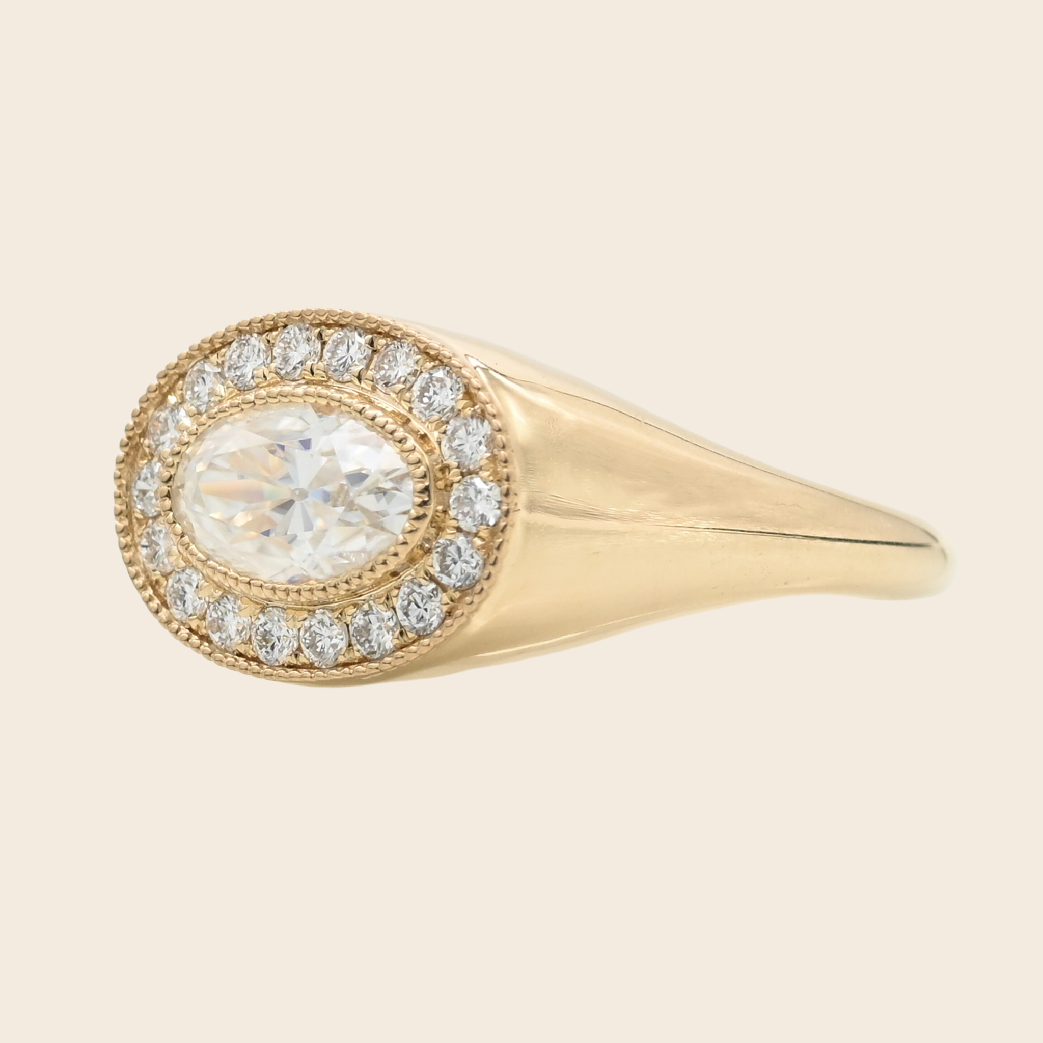 Our antique oval moissanite signet makes the perfect engagement ring.